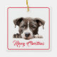 Feliz Natal do Ornamento Cão-Cerâmico. Um Enfeites de natal divertido para Cartões de natal do cachorro para a família e amigos. Personalize por trás. Doce Puppy na frente.