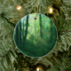 Raios do sol matinal a correr para uma brilhante floresta de Verão verde, com árvores maciças cobertas de mariposa e um espesso cobertor de mato. Uma fotografia manipulada digitalmente para dar às videiras sobrecultivadas, névoa azul-esverdeada, raios-deus ouro e árvore primavera-verde deixam uma qualidade de sonho.