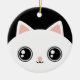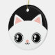Design bilateral do ornamento do impressão com uma cara branca bonito do gato do gatinho do kawaii com os olhos brilhantes pretos grandes em um lado e gatinho preto no outro lado. Assim você obtem um branco e um gato preto, dois gatos em um ornamento. Se você quer o mesmo gatinho em ambos os lados satisfaça contactam-me.