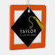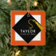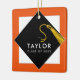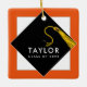 Presente e Enfeites de natal de gradação com boné de formatura preto clássico e design de tassel de ouro em fundo laranja. Para personalizar o texto de edição para adicionar o nome do formando e o ano da classe do mais velho.