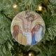 Este ornamento cerâmico redondo do feriado do Natal tem um mosaico do vintage de Jesus na cruz com as três mulheres que olham acima nele.