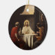 Este ornamento cerâmico redondo do feriado do Natal tem uma pintura do vintage de Jesus quebrar o pão com outros homens.