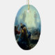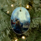 Este ornamento cerâmico dado forma oval do feriado do Natal tem uma pintura religiosa do vintage de Jesus no espírito.