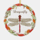 A libélula vermelha no centro da grinalda que é feita das folhas e das bagas da queda. O texto é customizável. A parte traseira do ornamento tem a mesma grinalda e os textos castanho chocolate escuros são customizáveis. Esta é uma ilustração digital.