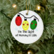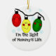 Um conjunto de três luzes de feriado em uma corda com olhos e sorrisos e texto que diz "Eu sou a luz da vida de Mamãe" em ornamentos personalizáveis de keepsasaes.