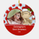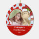 Os enfeites de natal bonitos da foto que caracterizam um macaco adorável com um fundo vermelho & azul, apenas adicionam SUA FOTO! Aperfeiçoe para o primeiro Natal & o segundo Natal. Um presente do Natal da maravilha sure a ser estimado por muitos próximos anos. gráficos do ©zenware