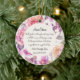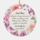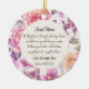 Uma bela maneira de dizer "obrigado a ti" à mulher que vai andar contigo de fé. Este ornamento personalizado do batismo é escrito do ponto de vista da criança, oferecendo uma mensagem sincera de gratidão pelo amor e orientação da madrinha. Cercado por uma coroa floral macia, ele apresenta um poema comovente, o nome da criança, e a data do seu batismo — uma marca que ela vai tesourar durante anos. Perfeito como presente de madrinha no dia do batismo ou um símbolo especial para se enfiar num cartão de obrigado. Presentes que valem a pena guardar. Momentos que vale a pena lembrar.
