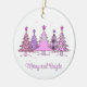 Celebre a temporada de Férias com um adorável ornamento personalizável, branco/rosa, de dois lados, de Natal. O keepsaokie apresenta belas árvores de natal cor-de-rosa com texto editável: "Feliz e Brilho" por baixo (no lado frontal) e também, no lado sacudir, um espaço para você digitar no texto que desejar, um nome de família ou nomes de casais ou uma data, quaisquer palavras significantes que farão com que este ornamento de Natal seja único e pessoal. Com cores delicadas e quentes e fundo branco de neve este ornamento adiciona um toque de elegância à sua decoração de férias. Perfeito para sua árvore ou como um presente pensativo para os entes queridos, esta peça certamente trará alegria e inspiração ao longo da temporada. Personalize-o com seu nome de família ou qualquer outro texto que você queira fazer exclusivamente seu ou um presente perfeito personalizado.