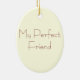 Uma menina bonito pequena que guardara seu luxuoso do coelho para este ornamento bonito. Esta menina tem o cabelo louro e está vestindo um vestido azul bonito com uma camisa branca e uns calçados pretos. Com uma mão está guardarando seu luxuoso do coelho. Não importa onde vai seu amigo do coelho é sempre com ela. O ornamento vem com o texto "meu amigo perfeito" na parte traseira mas você pode mudá-la se você gosta. De meus tinta e acrílico originais da pintura no papel.
