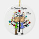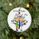 Um ornamento cerâmico redondo bonito da lembrança caracteriza o primeiro Natal de um casal junto! Adicione facilmente sua escolha do texto e da data ao ano em curso nesta figura bonito casal da vara com o ornamento do design da árvore de Natal. Faz uma grande ideia do presente!