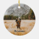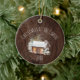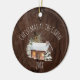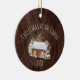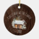 Celebre o Natal na cabana este ano! Este ornamento apresenta uma imagem de fundo de madeira rústica. Por cima do fundo está uma cabana de madeira, árvores e neve. As palavras "Natal na Cabina", por cima do celeiro, e por baixo da ilustração está espaço para você personalizar o ano. Carregue sua foto na parte traseira do ornamento e adicione texto!