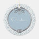 Uma maravilhosa bailarina de neve dupla de lado duplo personalizada. Este lindo ornamento de arte redonda apresenta uma bailarina de princesa da neve, com um tutu branco e uma tiara, dançando em uma bela terra de neve gelada na frente. Arte digital por Designs XG NYC. A borda em torno da arte é branca com flocos de neve e tinha uma moldura prateada esticando ao redor da trabalho de arte. Lembrança da cena de neve do balé do nutcracker. Personalize a parte de trás do ornamento com um nome e o ano, que também está cercado por uma borda de neve e uma borda prateada. Para alterar o estilo, cor ou tamanho do texto, basta clicar em 'personalizar' e essas opções também estarão disponíveis para você. Uma maravilhosa coleção clássica de guardas ou presentes para adicionar a qualquer coleção de ornamentos, e especialmente para bailarinas, dançarinos, e qualquer um que ame balé. Por favor, visite nossa loja para mais estilos e produtos de presentes neste maravilhoso tema de bailarina da princesa de neve!