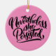 Clique em Personalizar para escolher a cor de fundo da sua escolha! Deixe-a falar! "No entanto, ela persistiu" em ferozes, letras negras feitas à mão sobre um fundo rosa claro, aparecem nesse ornamento de feriado. Honrando as mulheres mais ferozes em todo lugar como Elizabeth Warren. Para a feminista ou futura líder feminina. Uma parte dos lucros será doada à ACLU!