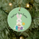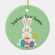 Personalize o nome do seu filho Primeiro Ornamento de Coelhinhos de Páscoa com texto personalizável em ambos os lados.