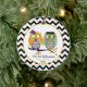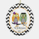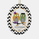 Um ornamento do Dia das Bruxas que caracteriza duas corujas que sentam-se em um ramo de árvore que guardara as mãos. A coruja fêmea é alaranjada e a coruja masculina é verde. Ambos têm as barrigas da viga do preto e do whtie. O fundo é viga preto e branco. Personalize com seu nome. Artigos de harmonização Look for em Jill'sPaperie.
