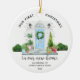 Simplesmente perfeito Primeiro Natal no nosso novo ornamento com uma cor-de-água azul na porta da frente. Datas para o seu primeiro Natal na sua nova casa. Visite nosso compro para ver a outra versão colorida deste ornamento.