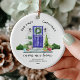 Simplesmente perfeito Primeiro Natal em nosso novo ornamento com uma cor d'água roxa na porta da frente. Datas para o seu primeiro Natal na sua nova casa. Visite nosso compro para ver a outra versão colorida deste ornamento.