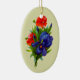 Íris e ornamento azuis bonitos da arte da reprodução das flores do vermelho. Clique sobre Customize para adicionar sua mensagem pessoal na parte traseira. Se você gostaria da imagem na parte de trás do ornamento também, contactar-me por favor me e estará feliz criar-lo para você. Se você precisa a ajuda ou tem quaisquer pedidos, contacte-me por favor enviam completamente a mensagem em meu homepage. Esta imagem está disponível em muitos produtos em minha galeria.