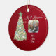 Envie votos calorosos para este feriado com nosso presente de ornamento de natal de árvore de Natal, com a nossa melancolia esbranquiçada, apresentando sua foto pessoal! Esta design deliciosa mostra uma bela árvore de Natal ilustrada em matizes verdes ricos, adornada com fitas ouros balançando, flocos de neve brancos e ornamentos de aquarela fofinhos. Colocado contra um fundo vermelho festivo, este cartão irradia felicidade de férias Com espaço para suas memórias favoritas, é a maneira perfeita de compartilhar memórias com familiares e amigos. Crie um nome único que captura a magia da estação!