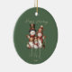 Celebre a estação com um charmoso Enfeites de natal de dois lados que é perfeito para a sua árvore! A frente apresenta três bonitos bonitos bonitos bonitos bonitinhos de neve vestidos para o inverno, cercados por "Felizes Feriados" na elegante caligrafia guiada, juntamente com os primeiros nomes da família e o ano num adorável fundo verde sábio. Nas costas, há uma foto de família animadora com todos vestindo chapéus de Papai Noel, acompanhada pelo seu nome de família. O ornamento é personalizado para a sua família, fazer-o como um tesouro para os próximos anos.
