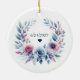 Comemore um belo começo com este elegante ornamento de casamento de dois lados, adornada em ambos os lados com uma coroa floral suave em tons românticos de azul, roxo e rosa. O lado frontal apresenta um monograma personalizável de casamento de três letras, que é delicadamente enquadrado pela coroa florescente - simbolizando perfeitamente a unidade e o amor. Sacudir-o para revelar a data do casamento, acentuado com um pequeno coração por baixo - um detalhe doce e sutil que torna esta manutenção ainda mais especial. Seja exibido em uma árvore de férias, doado a convidados, ou guardado como lembrança pessoal, este ornamento captura a essência do dia de seu casamento de uma forma eterno e significativa. Um belo lembrete de um amor que está sempre na estação.