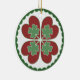 Ornamento circular Folksy contudo à moda com nosso afortunado no design do Hex do amor. Com um toque da sorte e de bênçãos irlandesas, os trevos quádruplos no flutuador verde sobre a trevo-como o arranjo de corações vermelhos, uma combinação perfeita para a sorte e amor para casais. Os quatro corações vermelhos evocam a paixão e a luxúria para seu amor VERDADEIRO. Quando os trevos forem um sinal tradicional da boa sorte, os trevos verdes em um arranjo de quatro igualmente representam o crescimento a longo prazo e sucesso durável para a relação. O scalloping verde em torno da borda representa "a navigação lisa" nas ondas de oceano da vida.