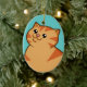 Os amantes do gato de todas as idades adore este ornamento do feriado do gato que caracteriza uns desenhos animados de um gato malhado alaranjado gordo, feliz. Faz um presente do purr-fect para o fancier felino em sua vida. Use o botão da PERSONALIZAÇÃO para adicionar sua própria mensagem do texto ou do feriado.