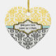 ornamento do aqua branco cor damasco preto. A parte superior é de cor damasco amarela e branca e a parte inferior é de preto e branco. Uma faixa aqua separa as duas partes. Seu texto é digitado em um rótulo elegante com contorno branco e amarelo. Um excelente para casamentos especiais, aniversários.