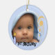 Ornamento da lembrança do primeiro aniversario do bebê que você pode facilmente personalizar com foto do bebê e adiciona seu próprio texto à parte traseira. É grande como um presente de primeiro aniversario e será uma lembrança do nascimento e do ø birhday do bebê para os próximos anos.