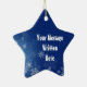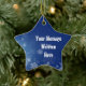 Tenha um Natal azul bonito com este ornamento invernal personalizado da estrela azul. Adicione seu próprio texto para fazer a isto uma lembrança a ser estimada para as gerações vindouras.