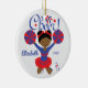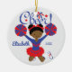 Ornamento bonito do cheerleader do afro-americano do elogio azul & vermelho. Fácil personalizar com seus nome & data. Visite nossa loja para ver este ornamento em uma grande variedade de cores da escola & de cores do cabelo