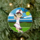 Menina pequena adoràvel bonito do tênis no boné de beisebol - ornamento.