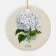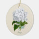 Uma obra de arte bonita do vintage é indicada neste ornamento. Um hydrangea branco está em ambos os lados. O texto customizável no verde está na parte inferior de cada lado do ornamento. Grande ideia do presente!