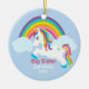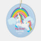 Queira algo especial para essa irmã mais velha? Este ornamento será uma lembrança por muitos próximos anos. Tem claro - fundo azul com uma onda do arco-íris colorido brilhante. Há um unicórnio com uma juba e uma cauda brilhantes, coloridas. Tem a "irmã mais velha". Personalize com um nome e um ano. Escolha todo o ornamento da forma e personalize-o. Nós igualmente temos uma irmã mais nova, e a irmã média neste design.