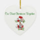 Elfos adoráveis anunciando o ornamento em forma de coração do "Primeiro Natal Juntos". Pode adicionar um ano no verso deste ornamento. Excelente maneira de decorar sua árvore de Natal ou dar como presente para recém-casados!