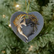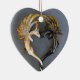 Impressão de escultura cardíaca de dragão preto e branco com sotaques dourados em ornamento pendurado em forma de coração.