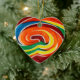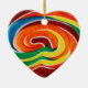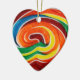 Um adorno cardíaco colorido com uma fotografia de um pirulito. Faz um presente divertido!