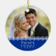 Estes enfeites de natal na moda contudo elegantes fazem uma grande lembrança para recentemente um casal do wed. Caracterizam as palavras "casadas e a feliz" em um fundo da cor sólida e em uns flocos de neve do beira ou os pequenos. Os nomes e o ano podem ser adicionados no verso. Adicione uma imagem do casal feliz e faça-lhe um grande presente de época natalícia!