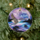 Brilhe sua árvore de natal e personalize este único ornamento de águia careca "Um dos tipos". Ela apresenta uma pintura de uma águia careca lançando-se sobre um rio iluminado em uma tempestade de relâmpago! Pintura de arte original do artista Kerry Miller.