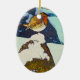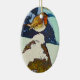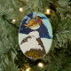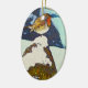 Este ornamento cerâmico oval caracteriza uma rendição da aguarela de um papo-roxo pelo artista Jayne Wilson.