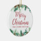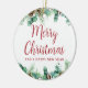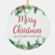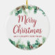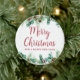 O ornamento cerâmico de Natal apresenta uma bela ilustração aquática da folhagem de inverno com 'Feliz Natal' numa bela letra de escrita. Este design mínimo, simples e elegante parecerá lindo pendurado na sua árvore ou onde quer que você queira colocá-la. Navegue na Coleção de Feriados de Folhagem de Natal para obter mais itens.