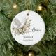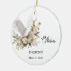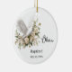 Este ornamento cerâmico é mostrado com um adorável impressão floral e pomba e um nome e data personalizados de seu batismo. Os fundos têm uma escritura. Personalize este item e altere o texto do exemplo para o seu. Imagem licenciada