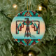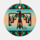 Personalize este Enfeites de natal de Thunderbird Tribal "Um Tipo"! Ele apresenta um Thunderbird Nativo Americano Tribal em um Fundo Turquesa e Laranja Sunset... cercado por Turquesa, Laranja e Fronteiras Negras! Design De Arte Original Pelo Artista Kerry Miller.