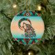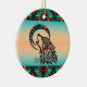 Personalize este Enfeites de natal Tribal Wolf "Um dos Tipos"! Ela apresenta um lobo tribal a vomitar na lua num fundo de turquesa e laranja... cercado por Turquesa, Laranja e Fronteiras Negras! Design De Arte Original Pelo Artista Kerry Miller.