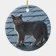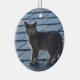 Gatinho cinzento bonito em um telhado de ardósia que olha startled muito