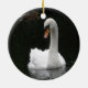 Este ornamento bonito ao estilo do pingente apresenta uma fotografia de um lindo cisne branco com um bico laranja brilhante. O cisne é um cisne mudo (Cygnus olor) e foi fotografado no Reino Unido. Está suavemente a atravessar a água e parece muito sereno.