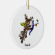 Cupido e Cometa puxam lado a lado, então este ornamento tem Cupido com seu arco e seta de um lado e Comet com um amor que atinge a lua do outro.