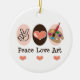 Um símbolo de paz, o coração, o pincel e pintura colorida uma paleta enchida em cor-de-rosa e em marrom no roupa, na roupa e na mercadoria fazem o professor de arte perfeito, o estudante de arte ou o presente de brotamento do artista. Um presente um óleo, uma cor de água ou um pintor do acrílico é certo amar.
