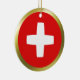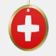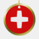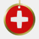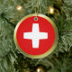 Ambos os lados deste ornamento caracterizam a bandeira da suiça morphed em um círculo com uma borda dourada. Decoração suíça simples para sua casa.