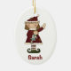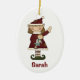 Enfeites de natal bonito, com trabalho de arte primitivo do país de uma elf menina segurando uma boneca. Personalize frente e verso com o nome do seu filho. Um adorável ornamento que ela vai tesourar durante anos.